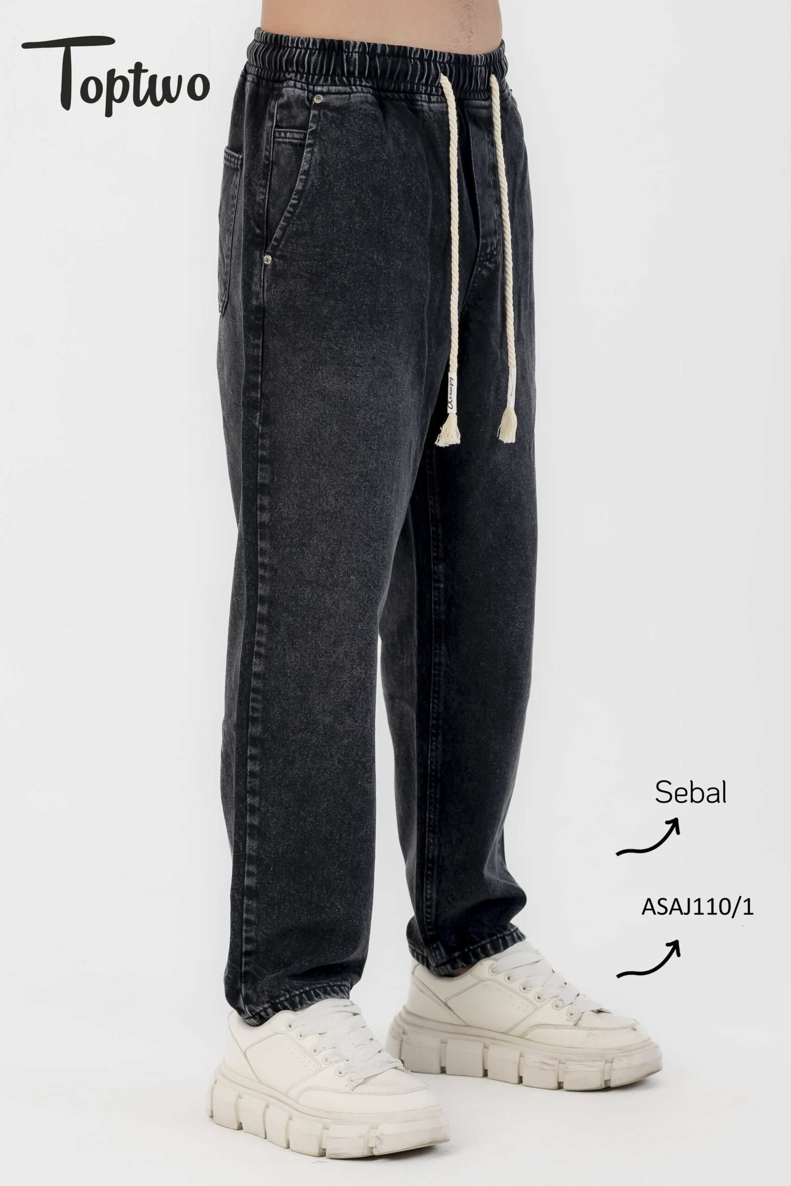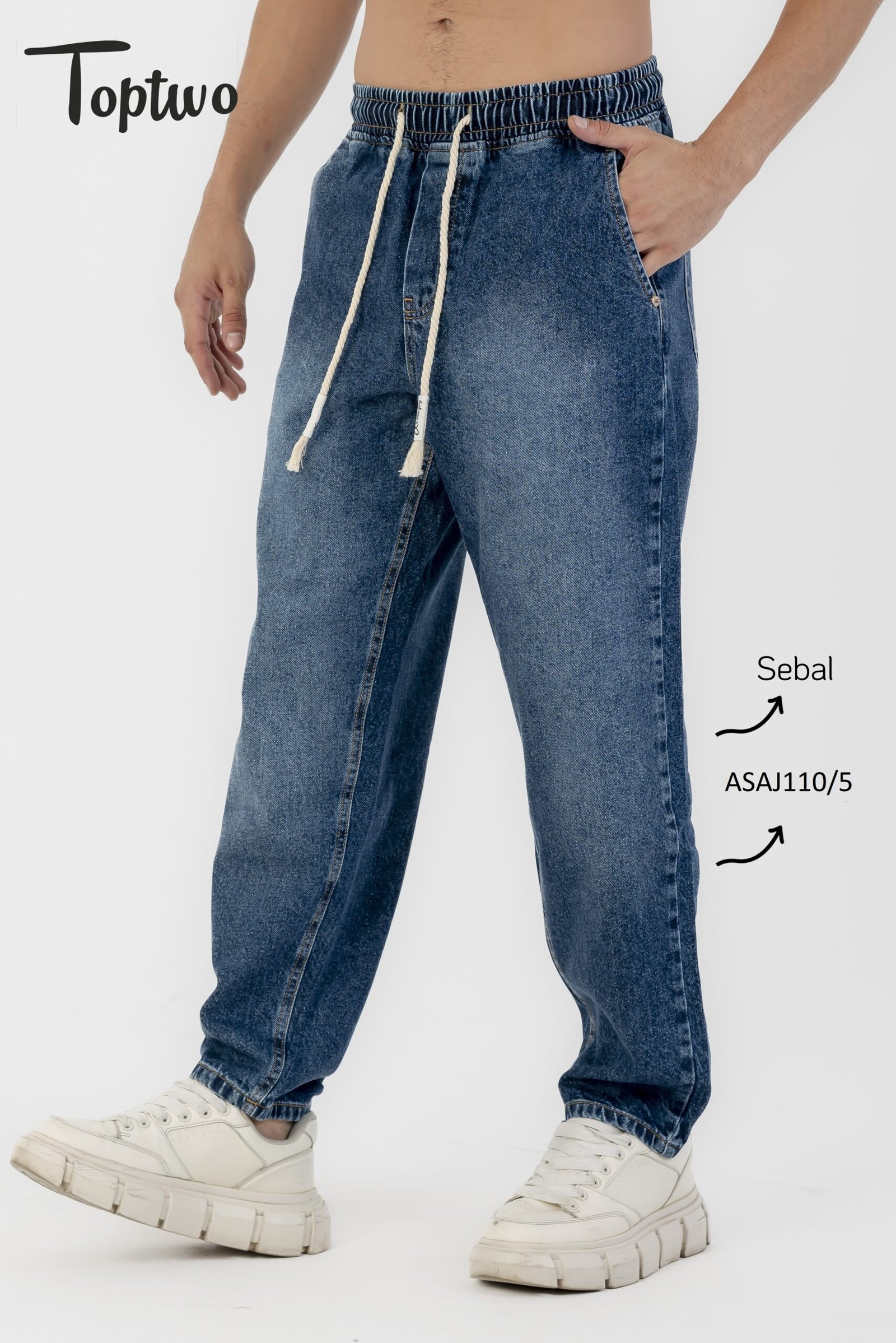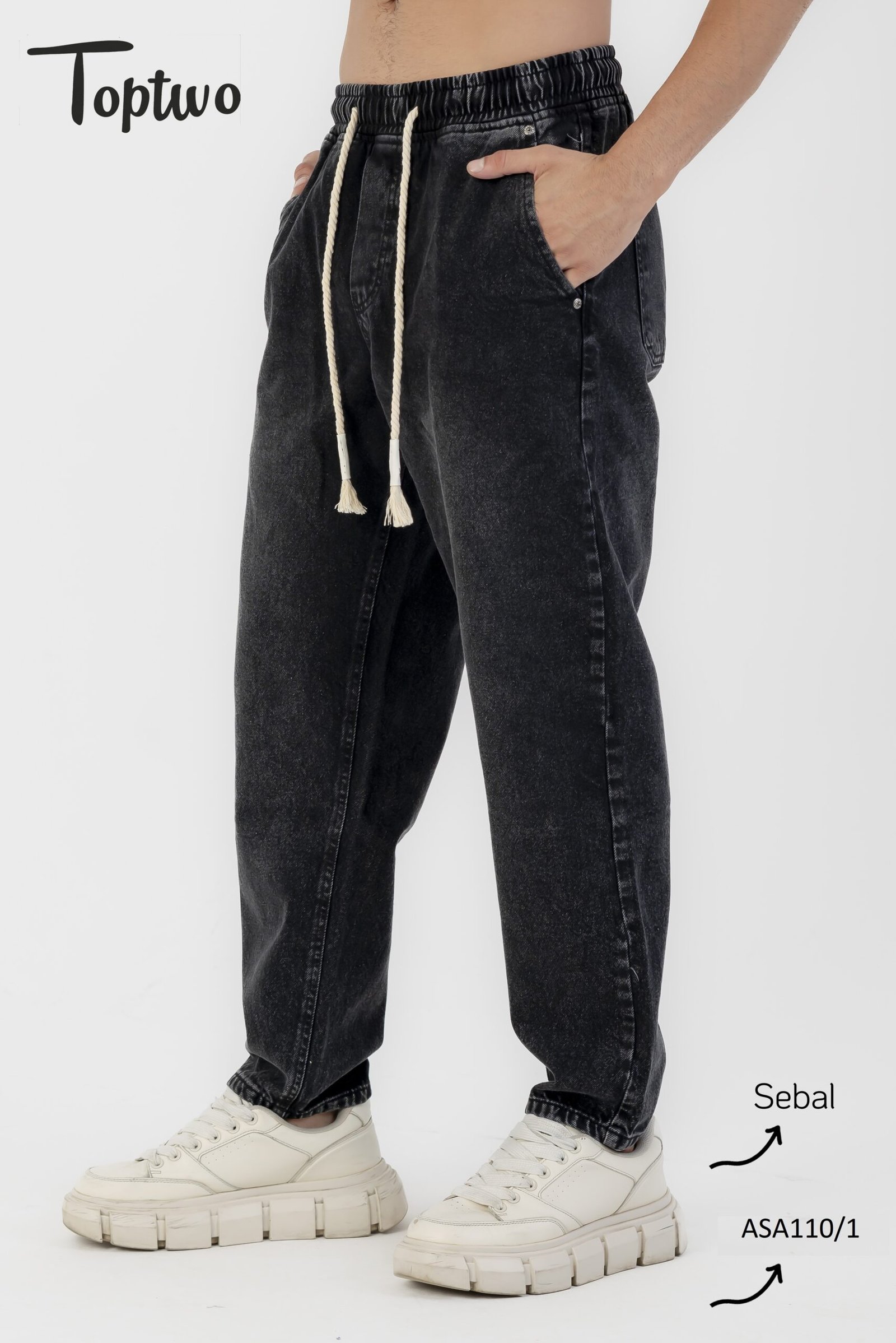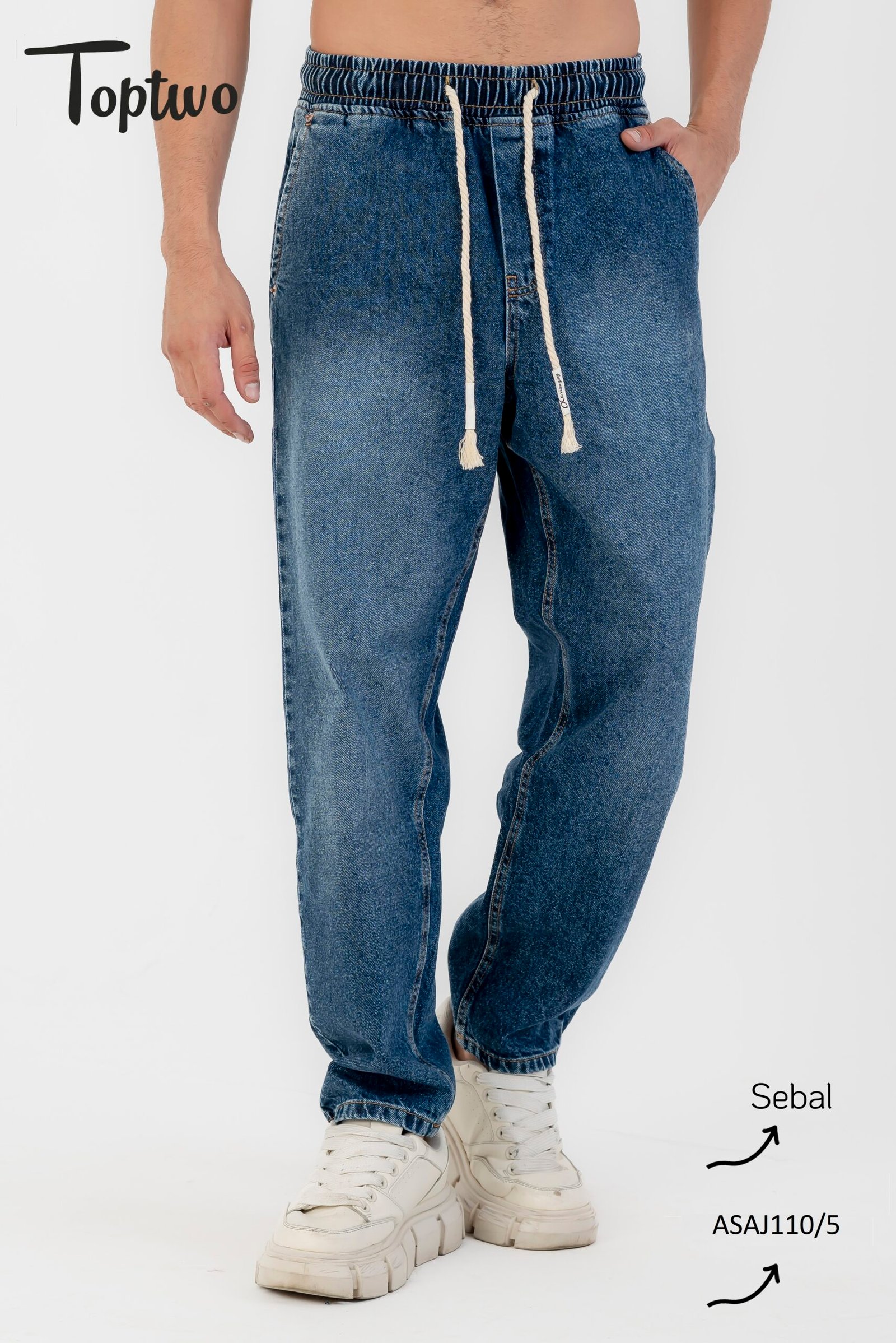 بنطلون جينز سيبال رجالي مصنوع من خامة جينز عالية الجودة ومريحة في اللبس اليومي. تصميمه “سيبال–سبور” بخصر مطاطي (إلاستيك) مع رباط من القطن لسهولة الضبط، وميمنحك شكل ستريت وير مميز وعصري